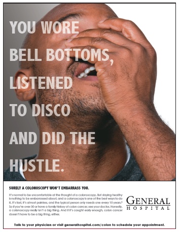 A pro-bono campaign for the Colon Cancer Prevention Project. Chris Colby art-directed.
